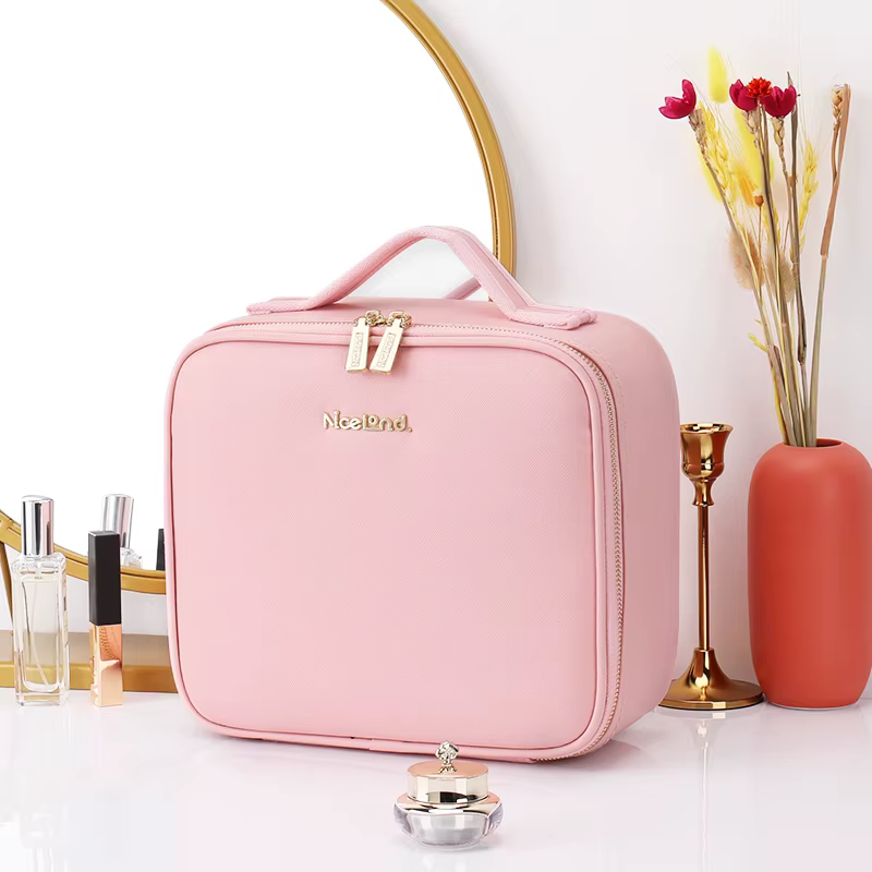 3 Color Train Case Mirror Waterproof Organizer With Adjustable Dividers Cosmetics Storage Case